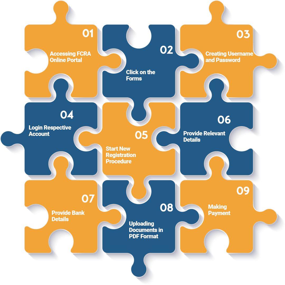 To apply for FCRA Registration, below- mentioned steps are required:-